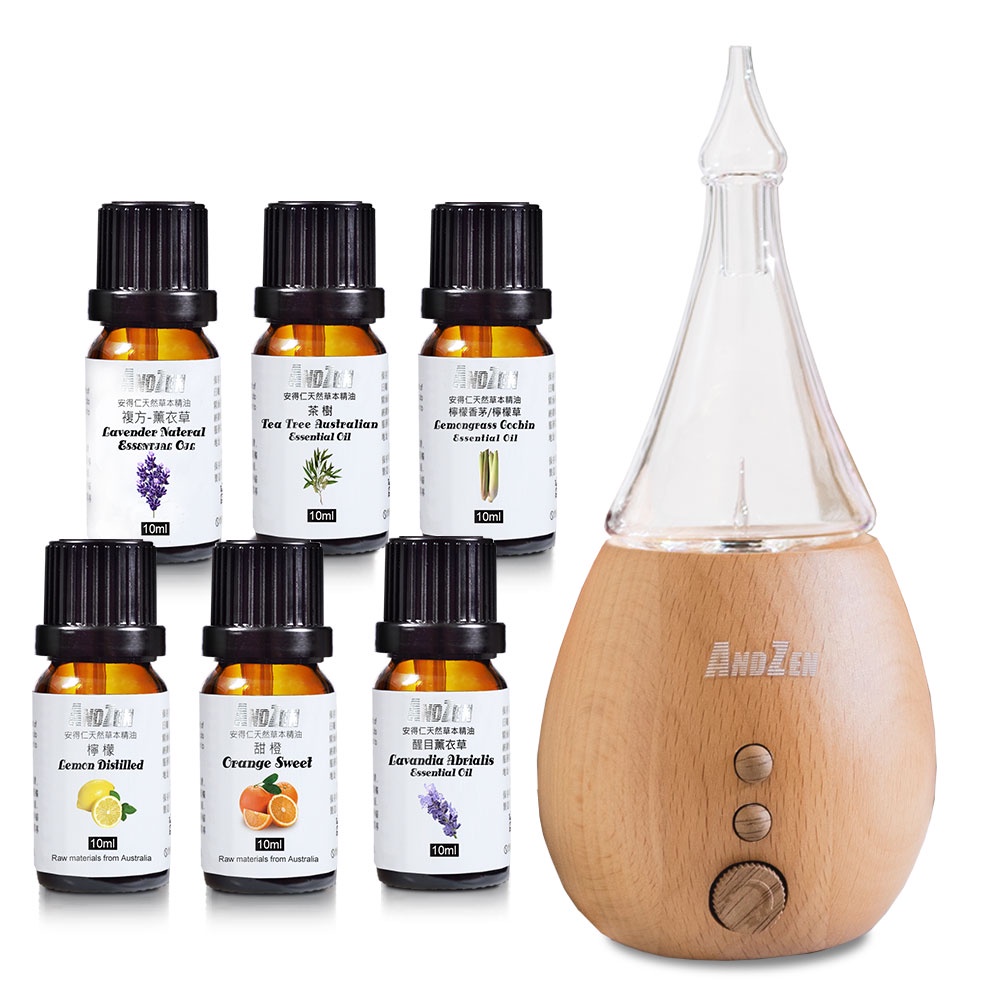 【 ANDZEN安得仁 】實木擴香儀AZ-8100(第2代)+精油10ml x 6瓶 香氛 負離子 定時 玻璃