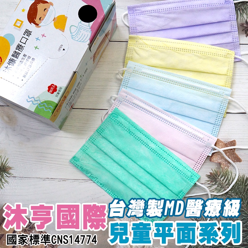 沐亨 兒童平面醫療口罩【50入/盒】兒童口罩 雙鋼印口罩 AMISS 台灣製+現貨 醫用口罩 彩色口罩