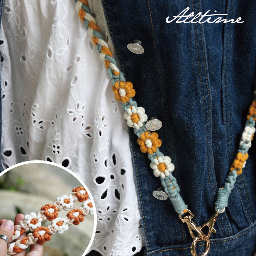 【AllTime】macrame小花朵朵三股辮手機背繩 (附夾片) 手機掛繩 手機吊繩 手機背帶 手機繩 編織繩
