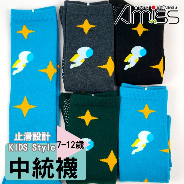 Amiss造型純棉止滑中統童襪【3雙組】-星球太空人(7-12歲) C408-14L混色-3雙入SocksAmiss全家人的襪子