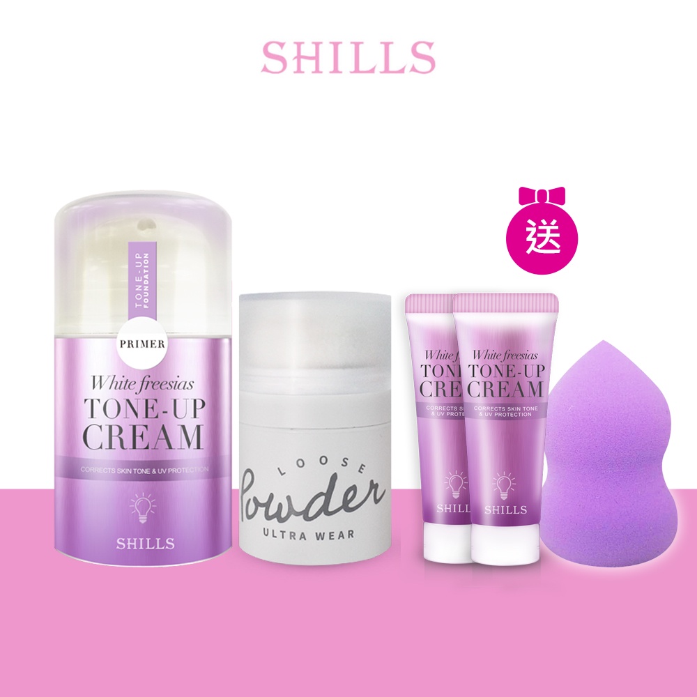 【SHILLS舒兒絲】抗UV美白濾鏡素顏霜小蒼蘭+零油光拍拍空氣蜜粉+贈素顏霜隨身版2入+美妝蛋透明霧(控油白)|蜜糖膚(柔焦粉)Face♛BBQUEEN女人購物網♛SHILLS★CINQUAIN★官方直營
