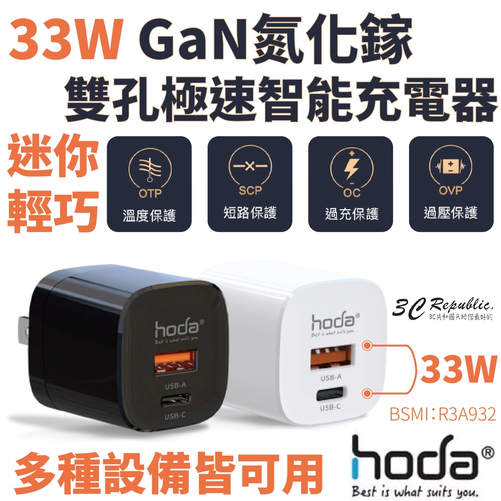 hoda PD 33W GaN 氮化鎵 智慧雙孔 極速智能充電器 快速充電器 快充頭 轉接頭 充電轉接器 充電頭 充電器黑色|白色Cables, Chargers & Converters3c共和國