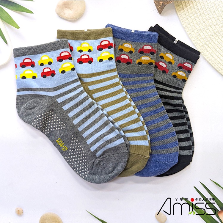 AMISS 細針止滑兒童長襪-條紋車【2雙組】細針精梳棉 車車童襪 薄透童襪 A210-133-6歲混款-2雙|7-12歲混款-2雙SocksAmiss全家人的襪子