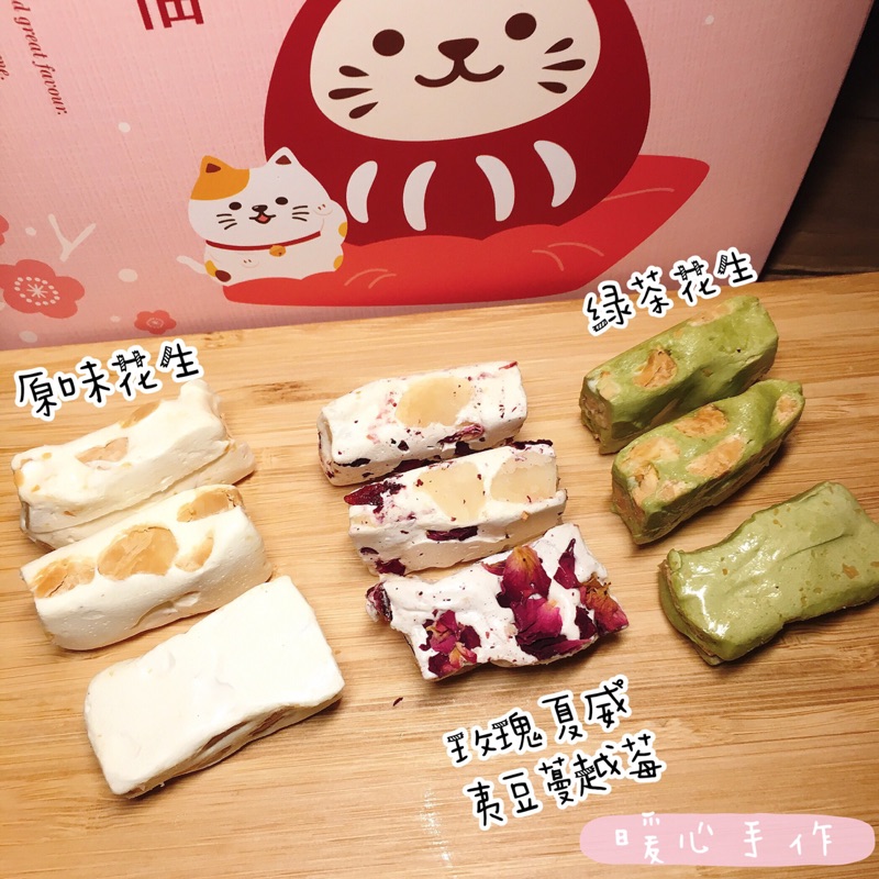 暖心手作牛軋糖 玫瑰夏威夷豆蔓越莓 / 綠茶花生 / 原味花生 100g 糖果 零食玫瑰夏威夷豆蔓越莓 100g|綠茶花生 100g|原味花生 120gPastry♡ 小妮子柑仔店 ♡