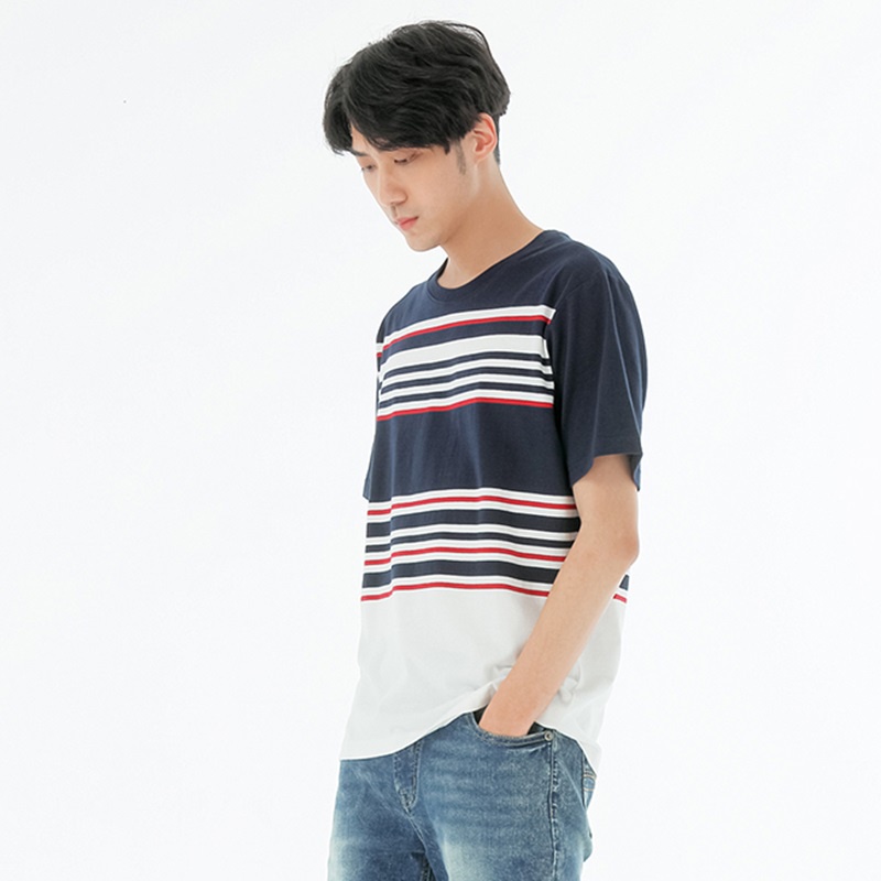 BIG TRAIN休閒配色調基本男T -B80724-56藍白紅條,L|藍白紅條,XL|藍白紅條,MT-ShirtsBIG TRAIN 官方旗艦店
