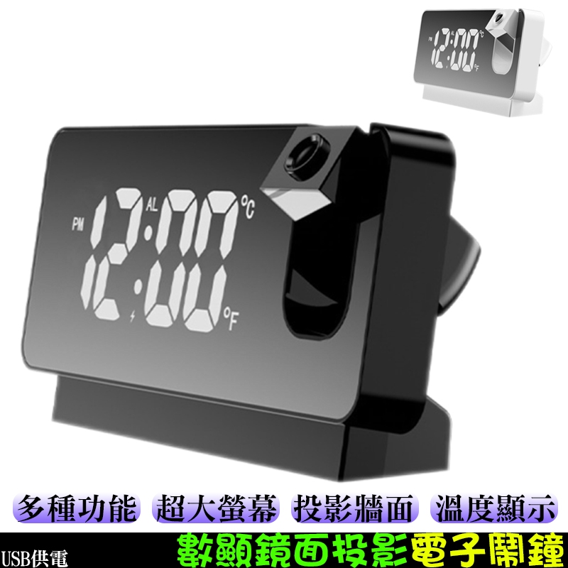 投影電子鬧鐘 時鐘 數顯鬧鐘 投影鬧鐘 數位顯示 鏡面鬧鐘 USB充電 適用辦公/居家/房間等 電子鐘 投影鐘 鏡子鐘黑色|白色ClocksADHIL旗艦店