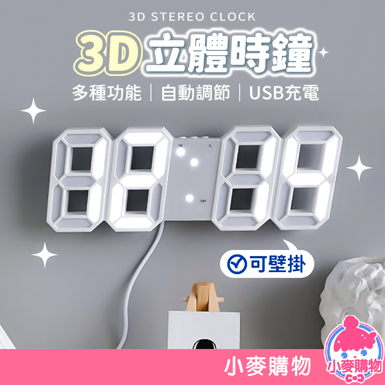 3D數字時鐘 立體時鐘 時鐘 鬧鐘 掛鐘 LED 工業風 計時 數字鐘 夜光 電子鐘 數字時鐘【小麥購物】【G511】黑底|藍字|白底|白字|白底|藍字|黑底|白字Clocks 小麥購物