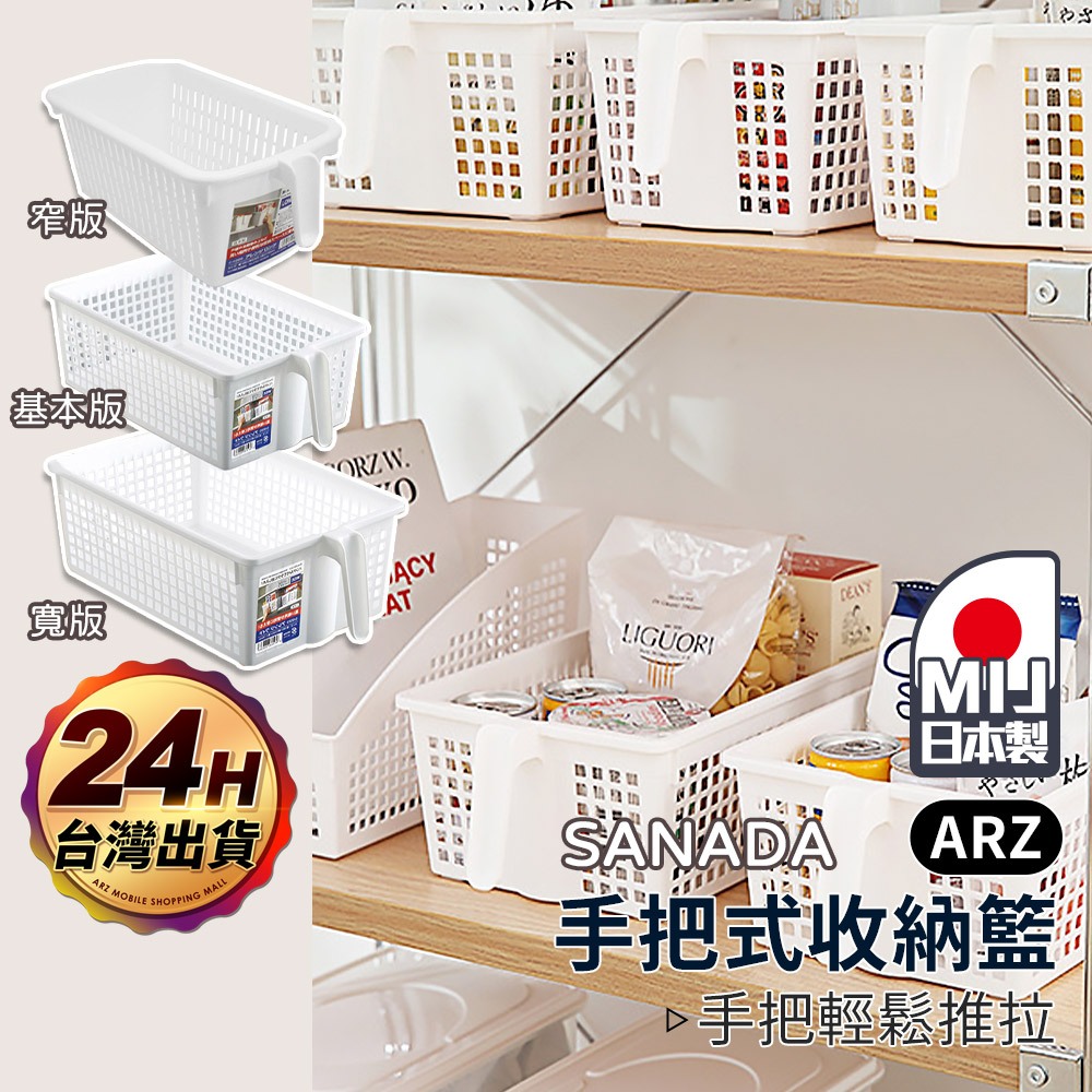 SANADA 手把收納籃 日本製【ARZ】【E192】櫥櫃收納盒 網格收納籃 高處收納 提把收納盒 把手收納盒 置物籃基本版|窄版|寬版Storage Boxes, Bags & BasketsARZ行動商城