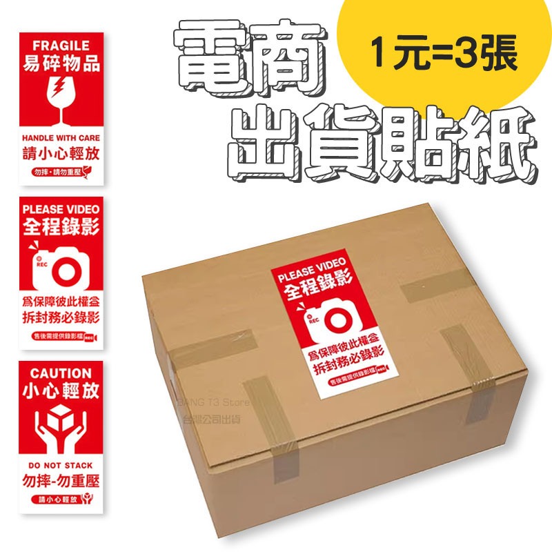 1元3張 出貨貼紙 有影片 易碎貼紙 開封錄影貼紙 錄影貼紙 網拍貼紙 防摔貼紙 全程錄影 易碎物品 小心輕放【Z48】