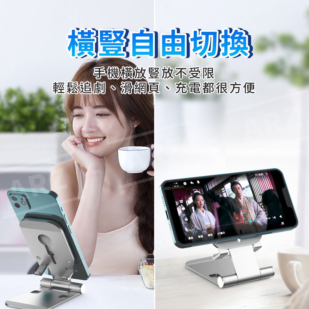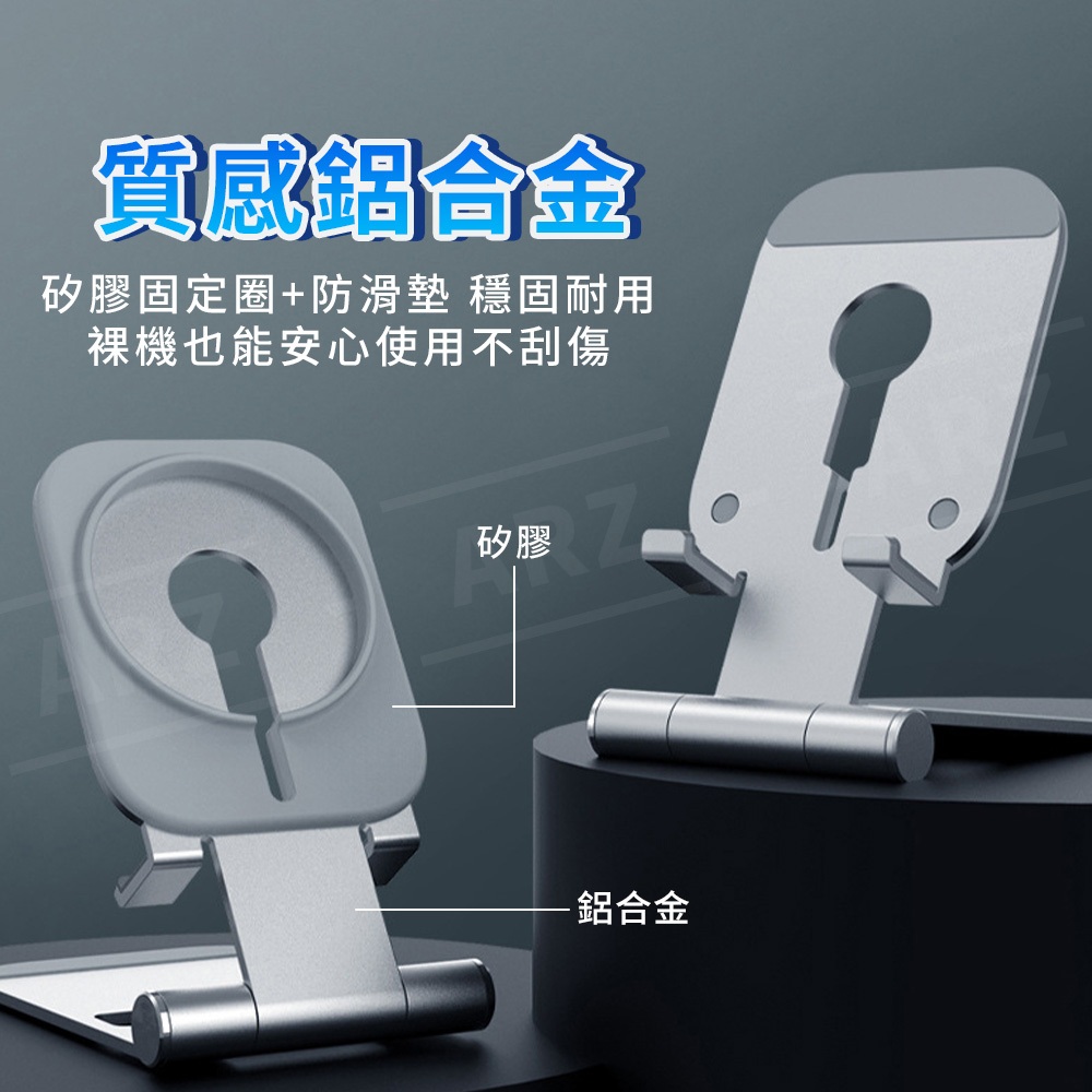 追劇神器 桌上手機架 Magsafe 充電架【ARZ 實拍現貨】【E273】鋁合金 摺疊手機支架 充電座 直播架 懶人支玫瑰金|太空銀|隕石黑Phone GripsARZ行動商城