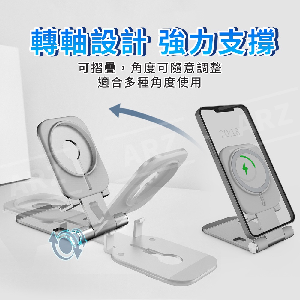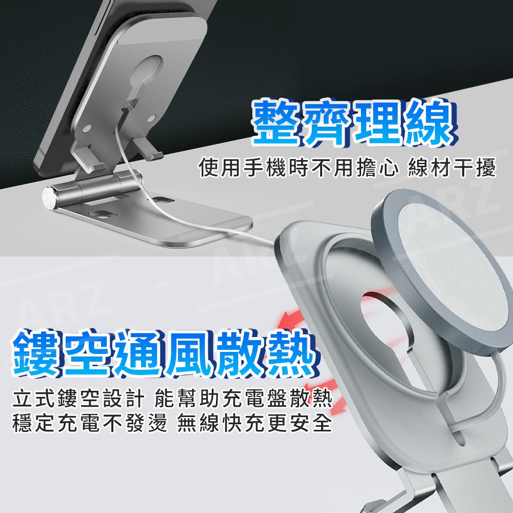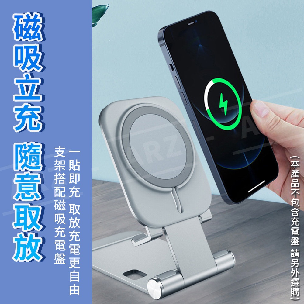追劇神器 桌上手機架 Magsafe 充電架【ARZ 實拍現貨】【E273】鋁合金 摺疊手機支架 充電座 直播架 懶人支