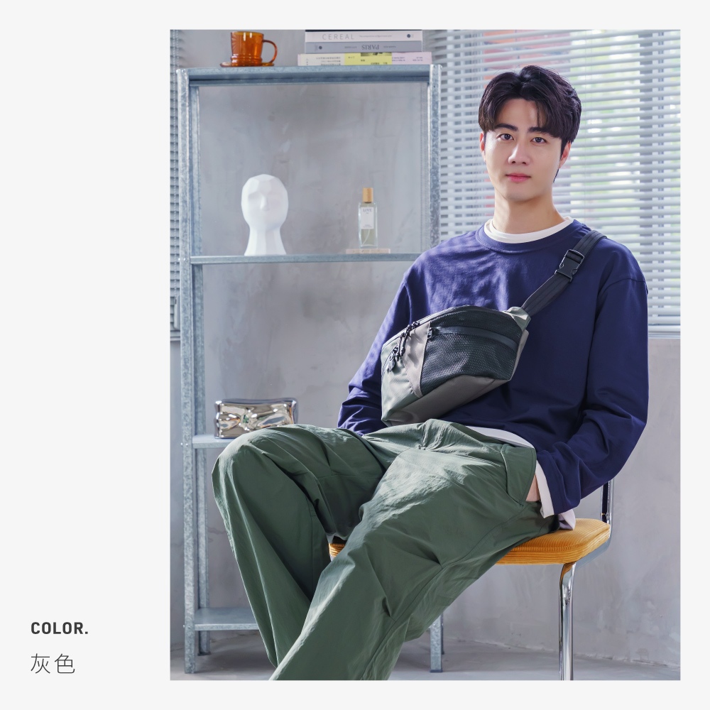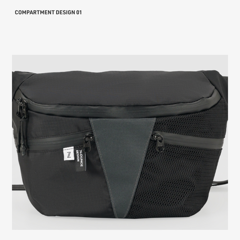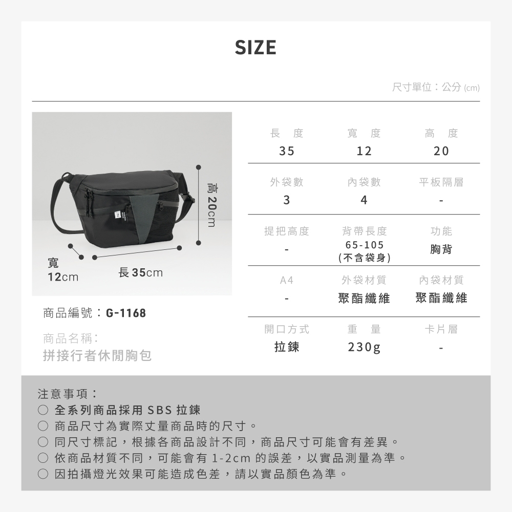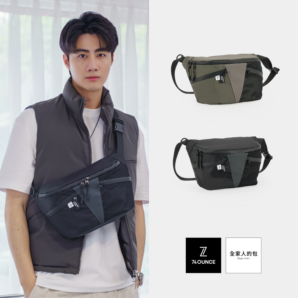 74ounce 拼接設計行者休閒胸包outdoor輕量尼龍斜背包口袋[G-1168-Q1-M]黑|灰74ounce