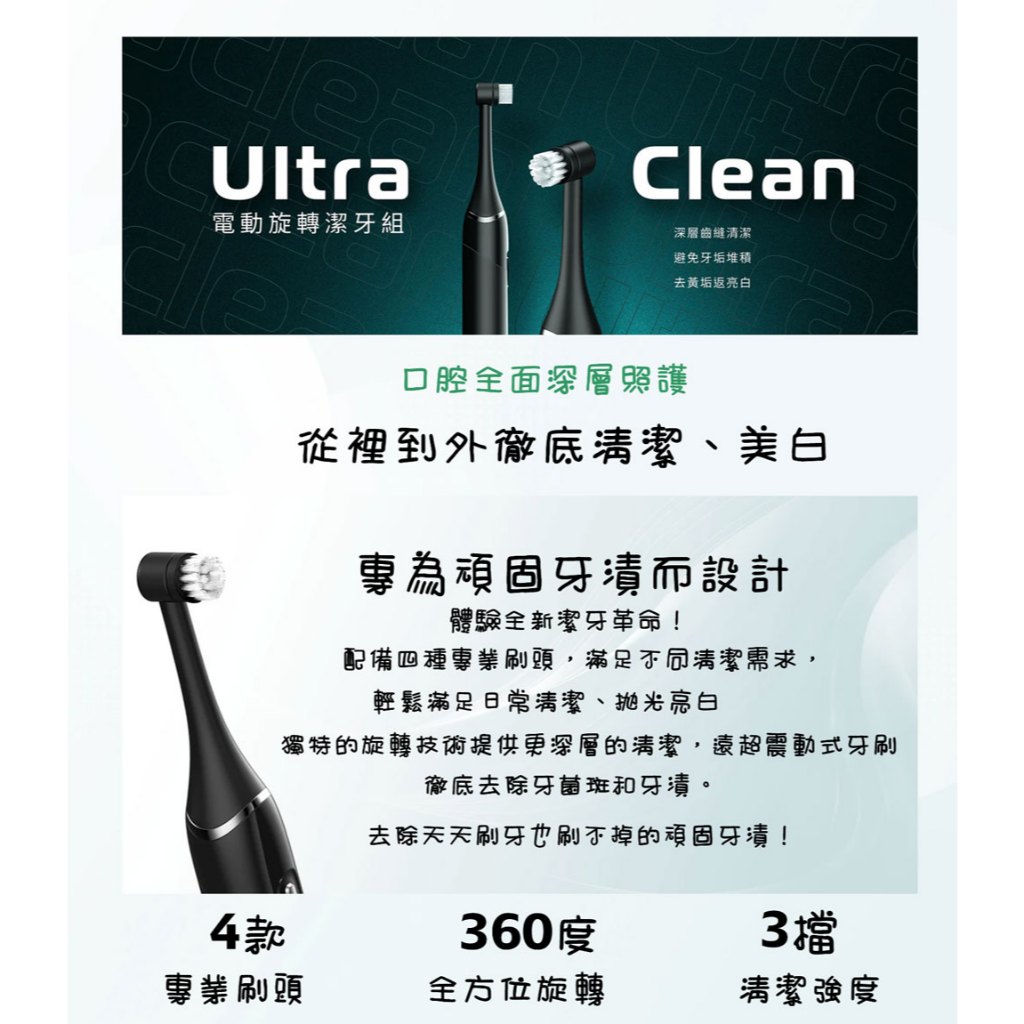 【未來實驗室】Ultraclean 電動旋轉潔牙組 牙刷 清潔 潔牙組 電動 家用電動 便攜式 四種刷頭 電動潔牙器