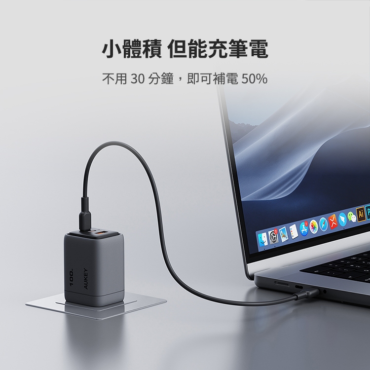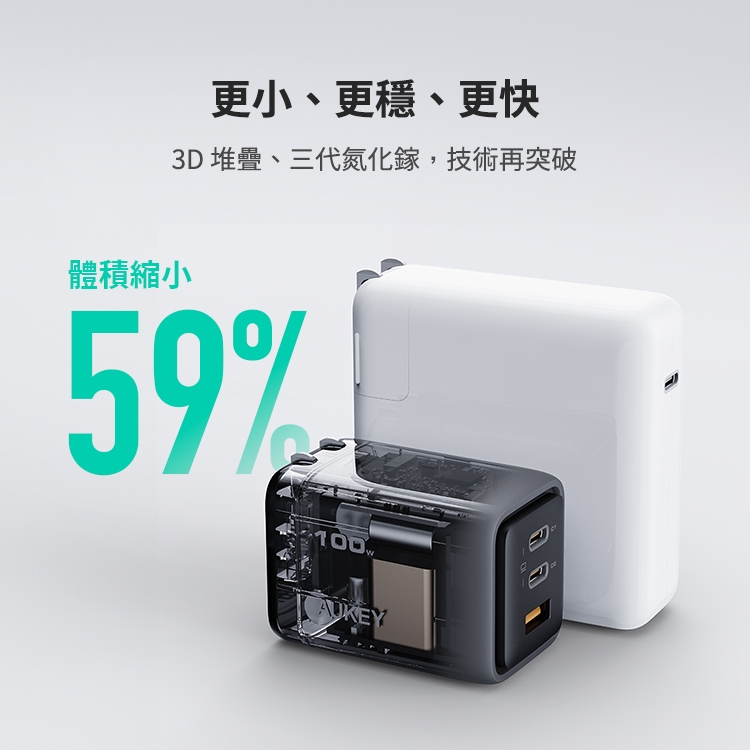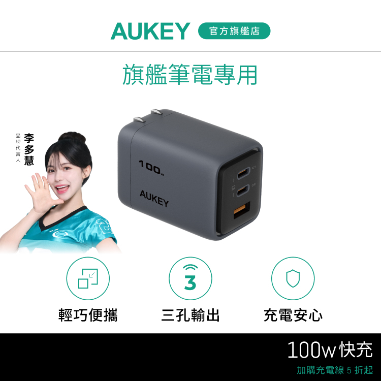 Aukey Comet Mix 3 100W(PA-C5)Type-C 氮化鎵 三孔 PD快充充電器