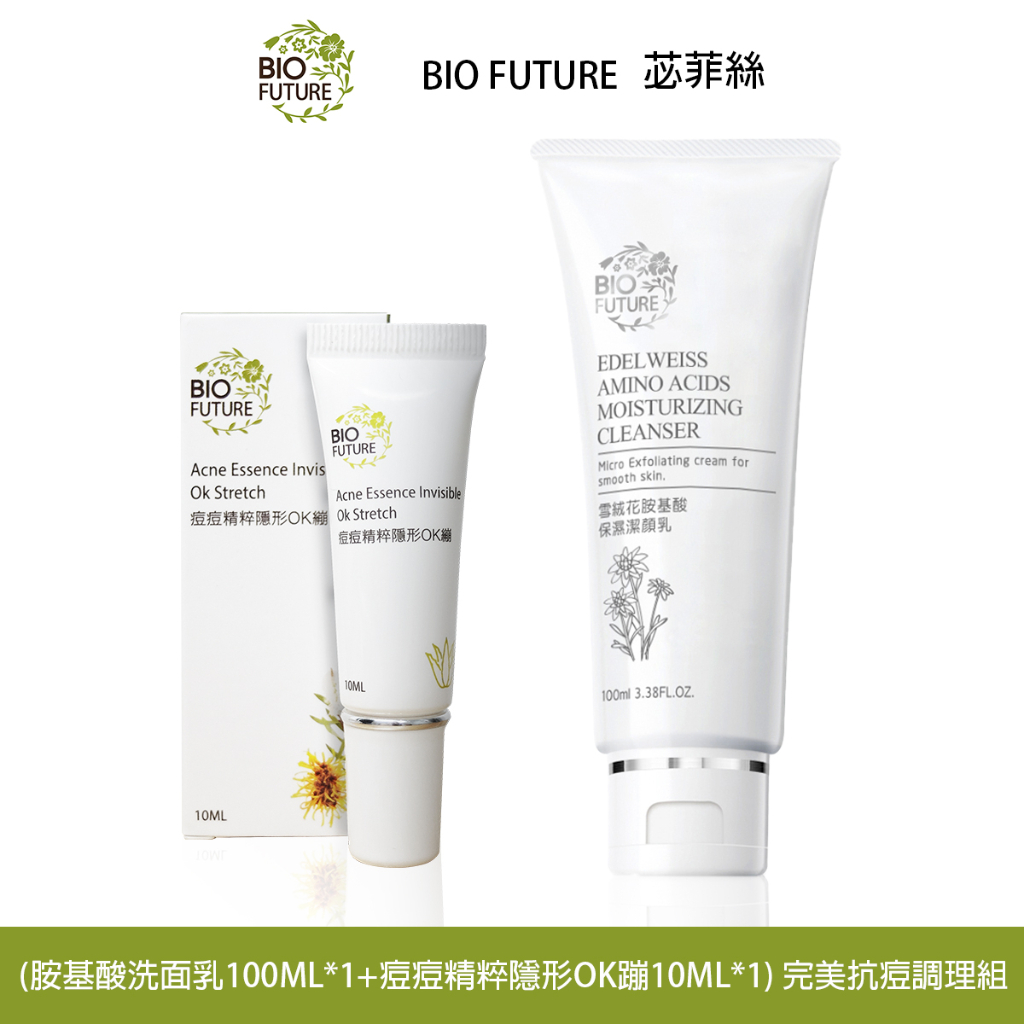 BIOFUTURE 苾菲絲 完美抗痘調理組(胺基酸洗面乳100ML*1+痘痘精粹隱形OK蹦10ML*1)