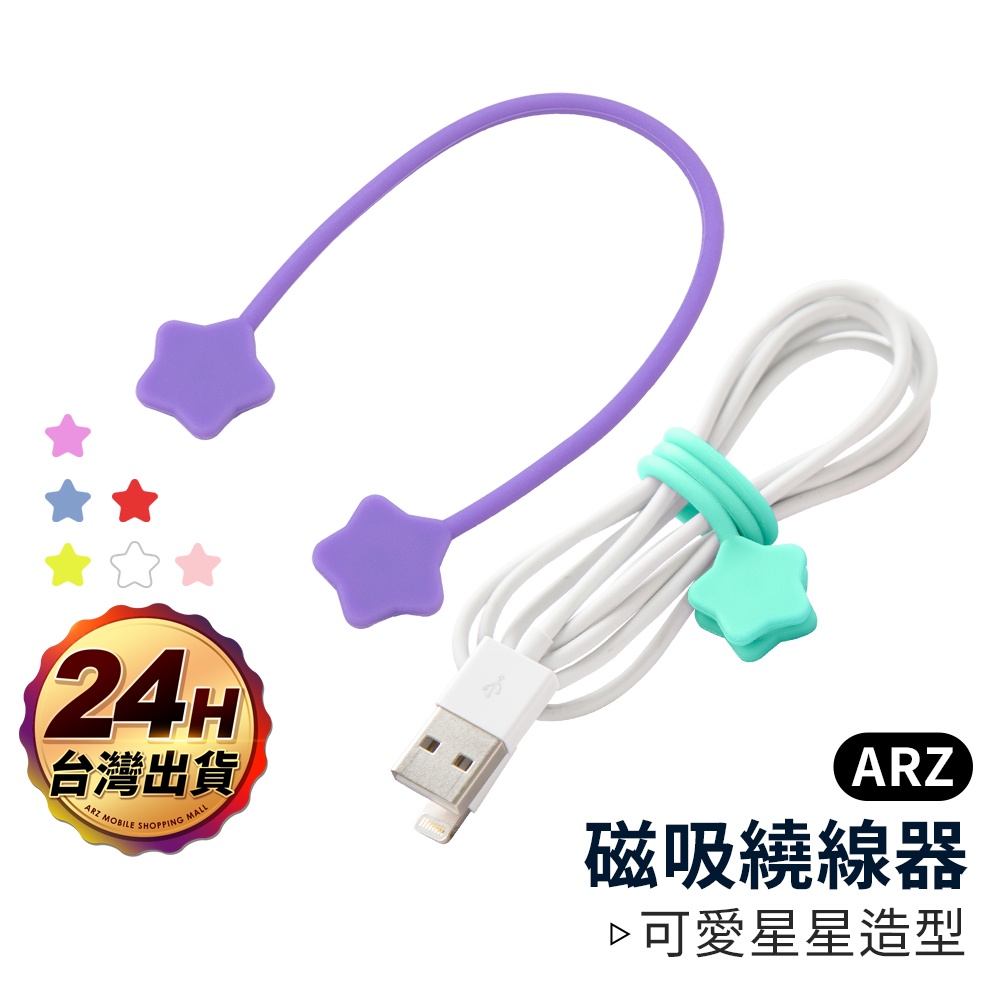 磁吸矽膠繞線器 星星造型【ARZ 實拍現貨】【A237】磁鐵掛繩 充電線 耳機 集線器 捲線器 整線器 收線器 固線器