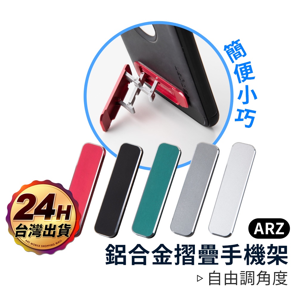 鋁合金摺疊手機架【ARZ 實拍現貨】【B318】可調角度 迷你小巧 黏貼式 不留痕 折疊 懶人 隱藏式 手機支架 立架灰色|紅色|黑色|綠色|銀色Phone GripsARZ行動商城