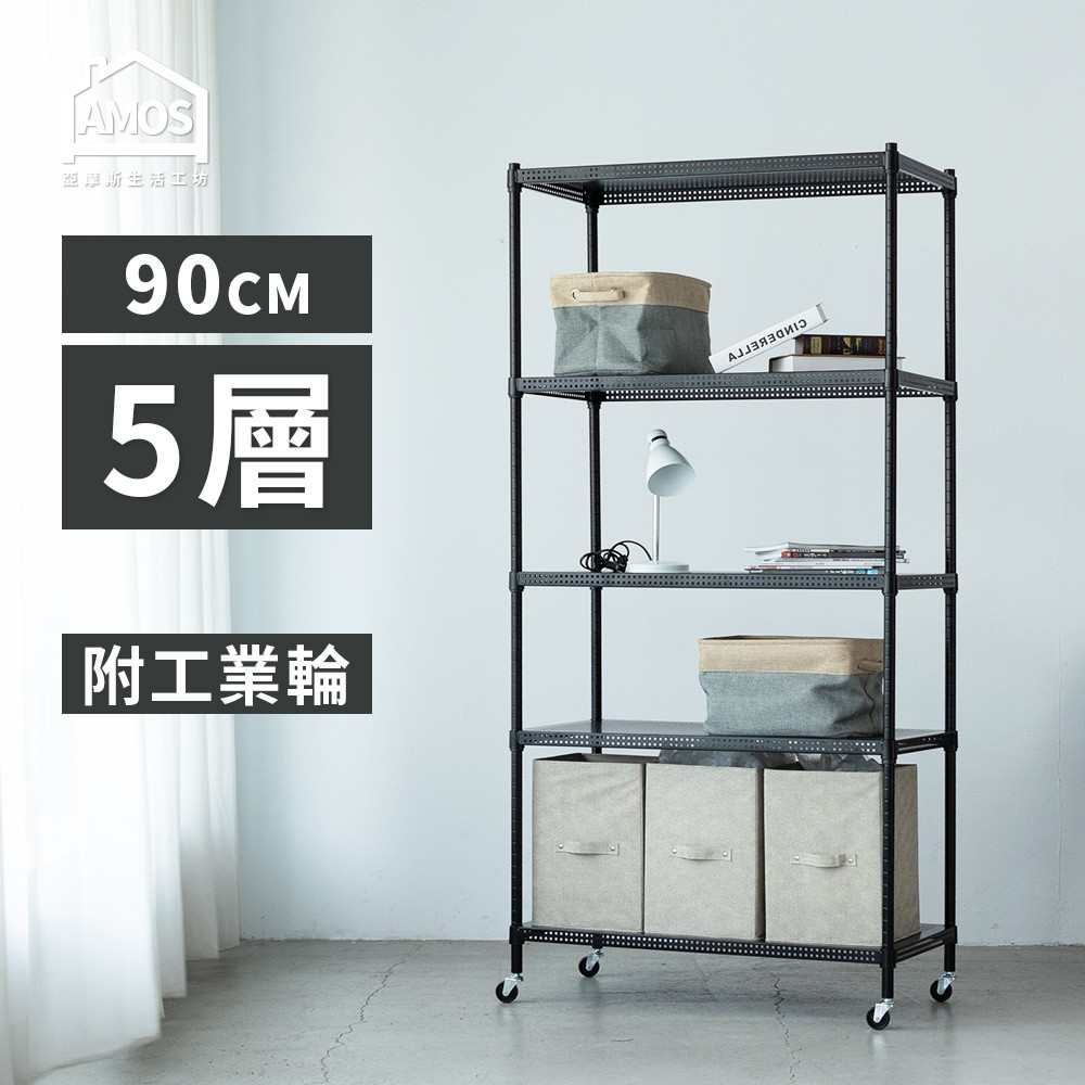 Amos 亞摩斯 超穩耐重鐵力士90cm五層置物架+輪 收納架 電器架 展示架 貨架 鐵力士架 層架 WBW032黑色|白色Shelves & RacksAmos亞摩斯