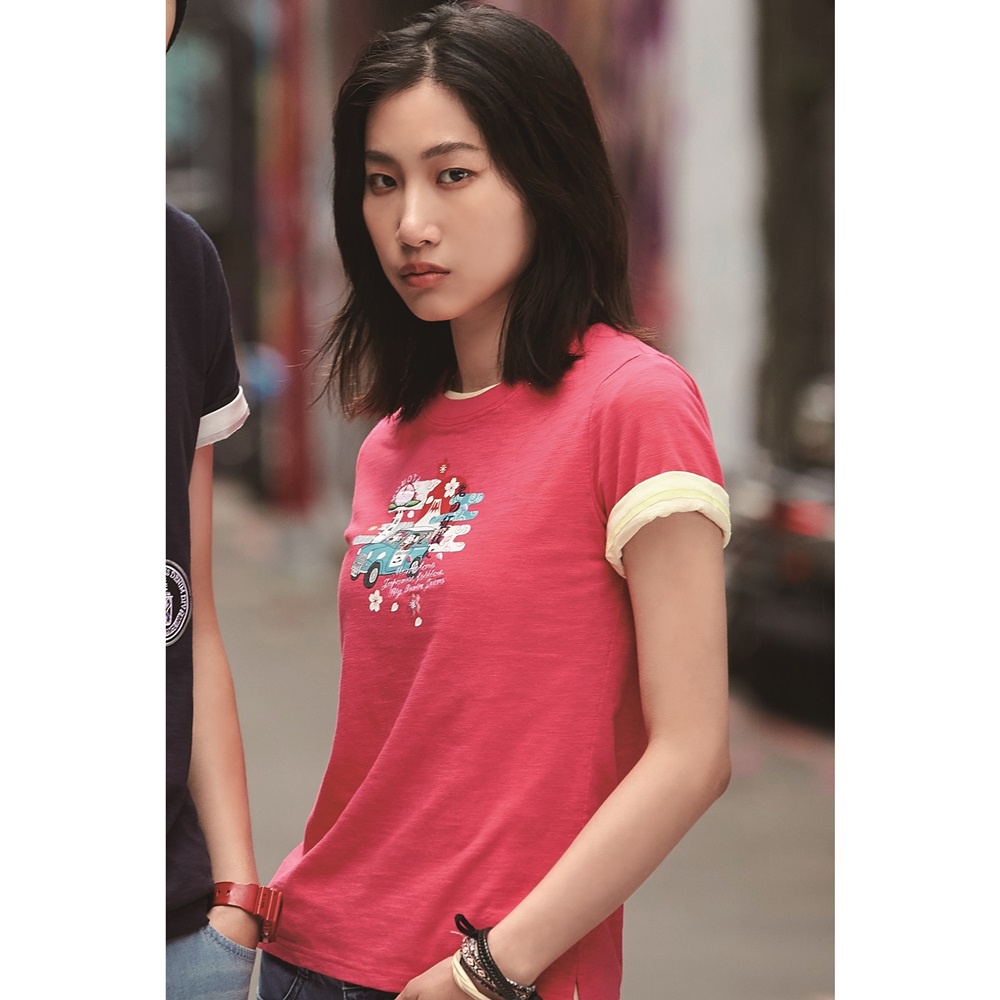 BIG TRAIN 桃太郎竹節棉擺開衩女T 桃紅S|M|LT-shirtsBIG TRAIN 官方旗艦店