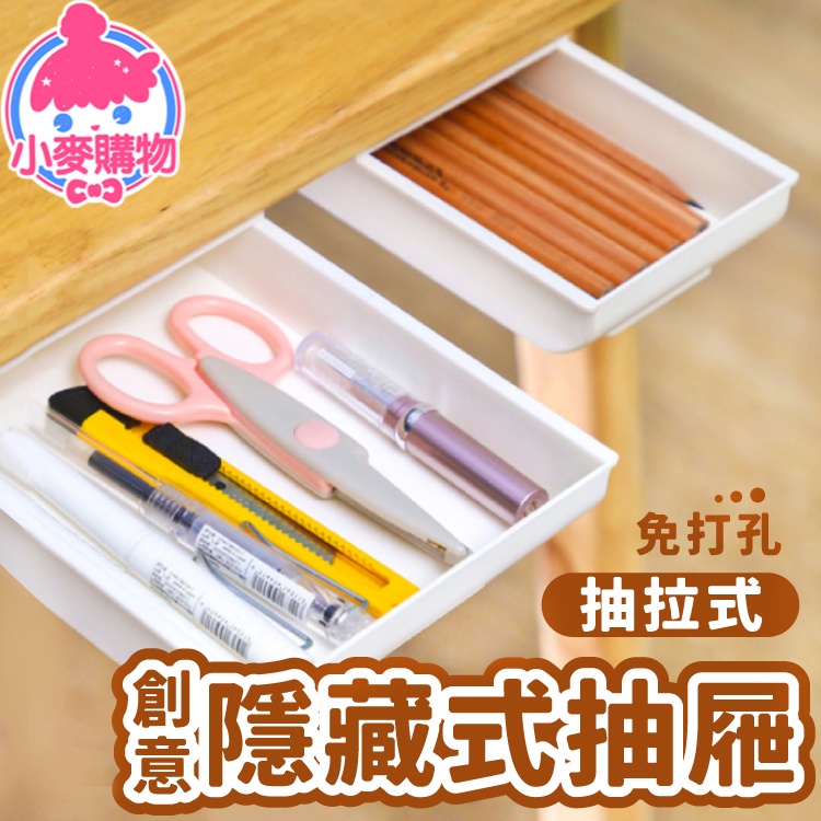 隱藏式抽屜 桌下抽屜 黏貼式小抽屜 抽屜 抽屜式收納盒 桌下收納 收納盒 置物盒 抽屜筆盒 筆盒【小麥購物】【G251】