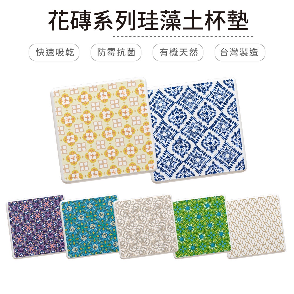 自創經典花磚圖騰 硬式珪藻土杯墊 10x10x0.9 矽藻土 防潮 文藝風 SGS檢驗 不含石綿【5ip8】