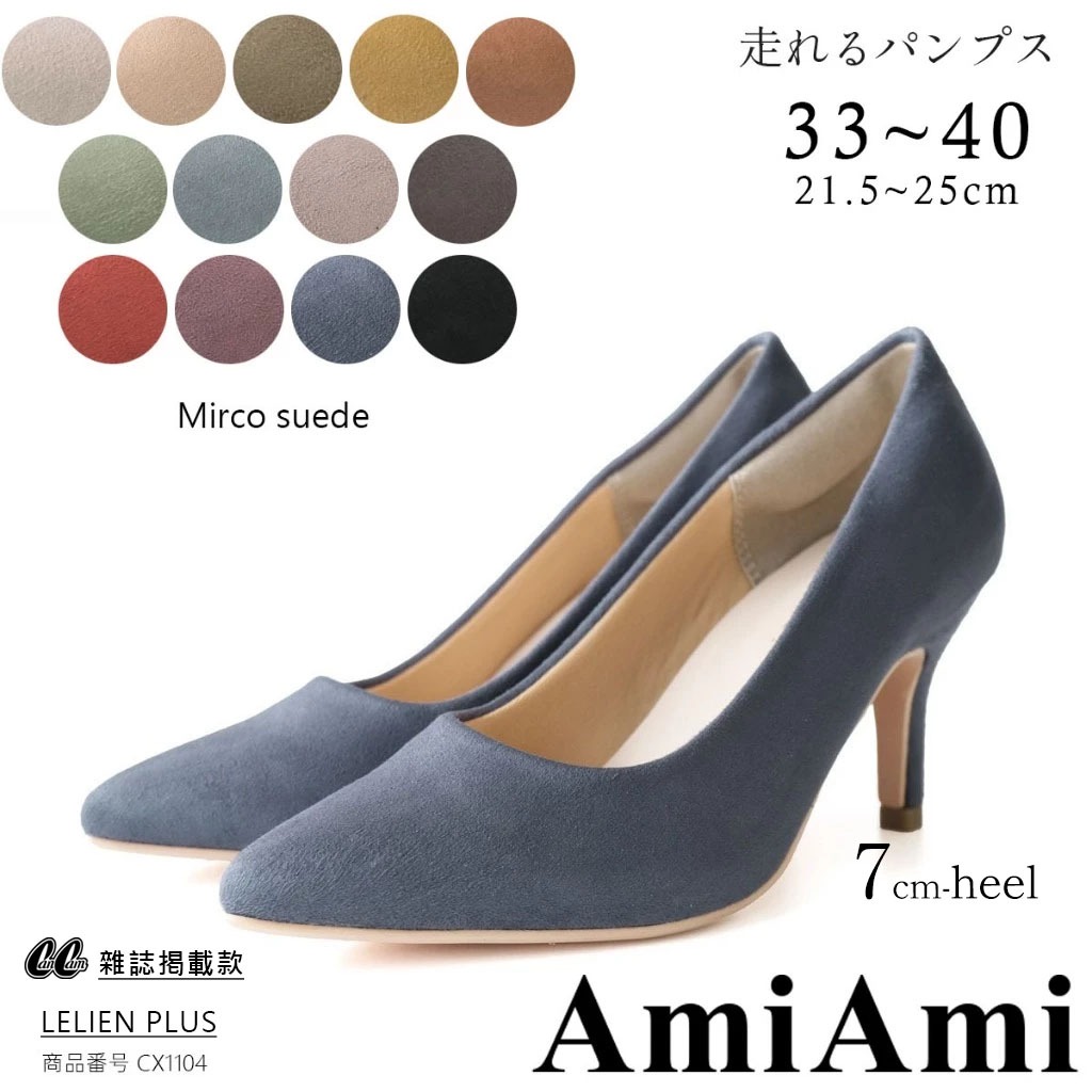 【AmiAmi】 日本女鞋品牌健步如飛人氣尖頭7公分高跟鞋 日本澀谷|純色單色麂皮絨布 網紅百搭款CX1104