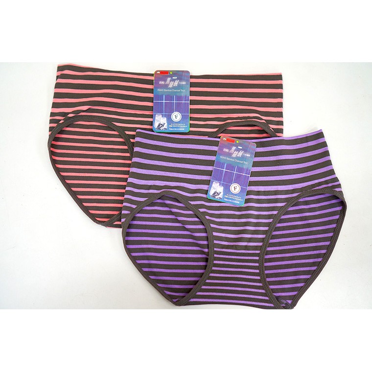 【AMISS】一體成型無縫編織條紋竹炭內褲 中低腰 無痕內褲 無縫內褲 台灣製造 A112-13粉色條紋|紫色條紋PantiesAmiss全家人的襪子