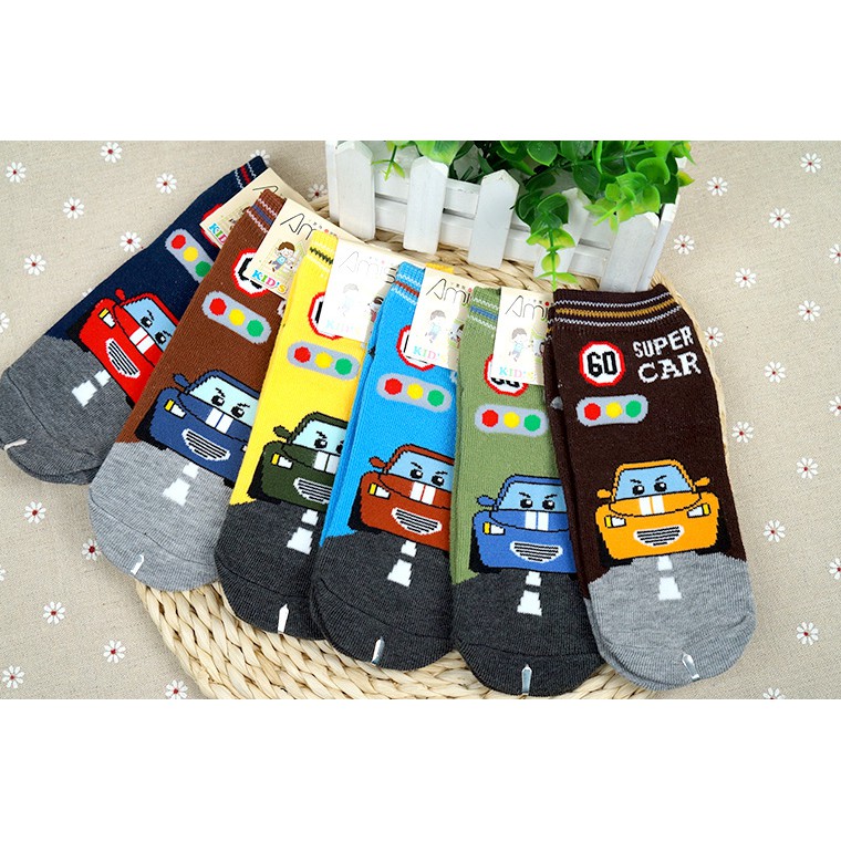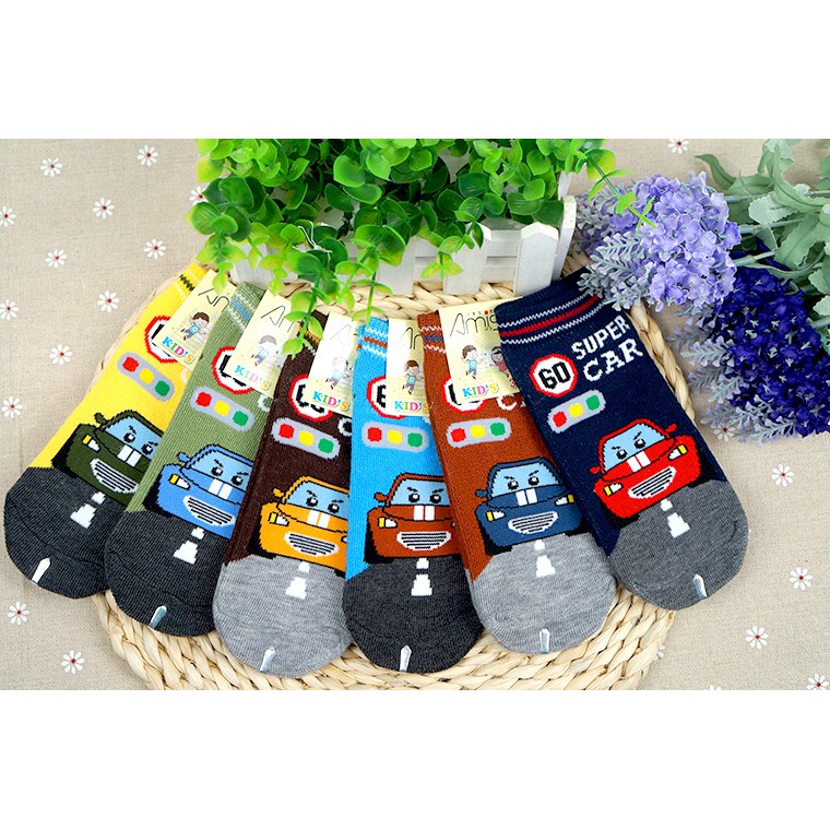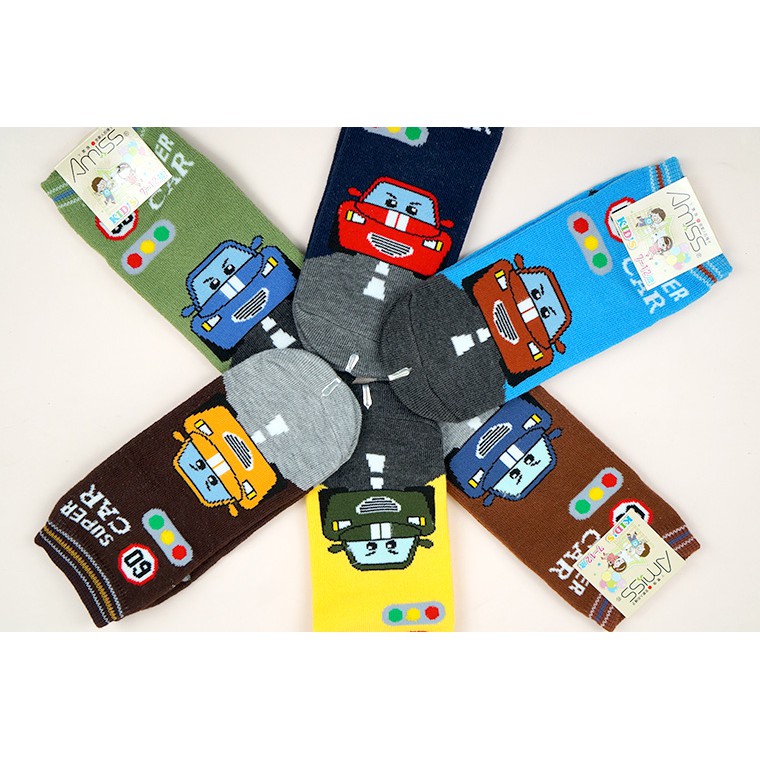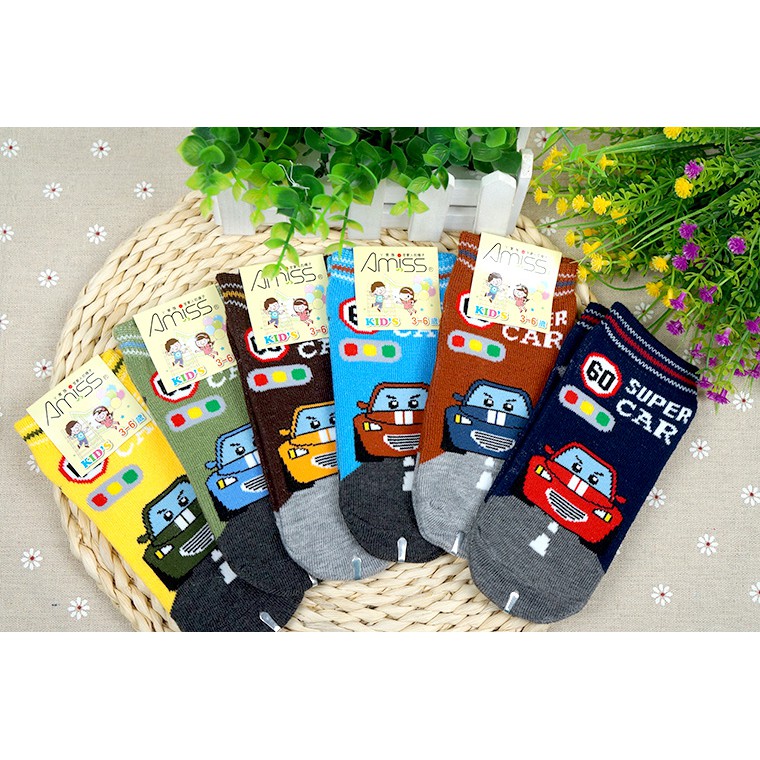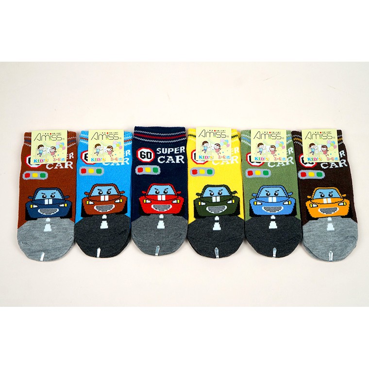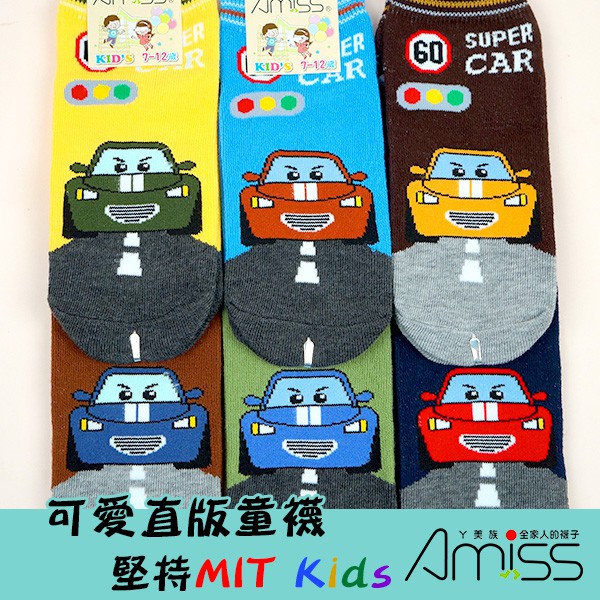 【Amiss】可愛直版止滑童襪【3雙入】-SuperCar 跑車 車車 1-3歲/3-6歲/7-12歲 (C405-11-3歲|3-6歲|7-12歲SocksAmiss全家人的襪子