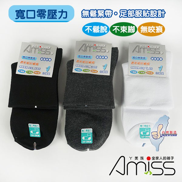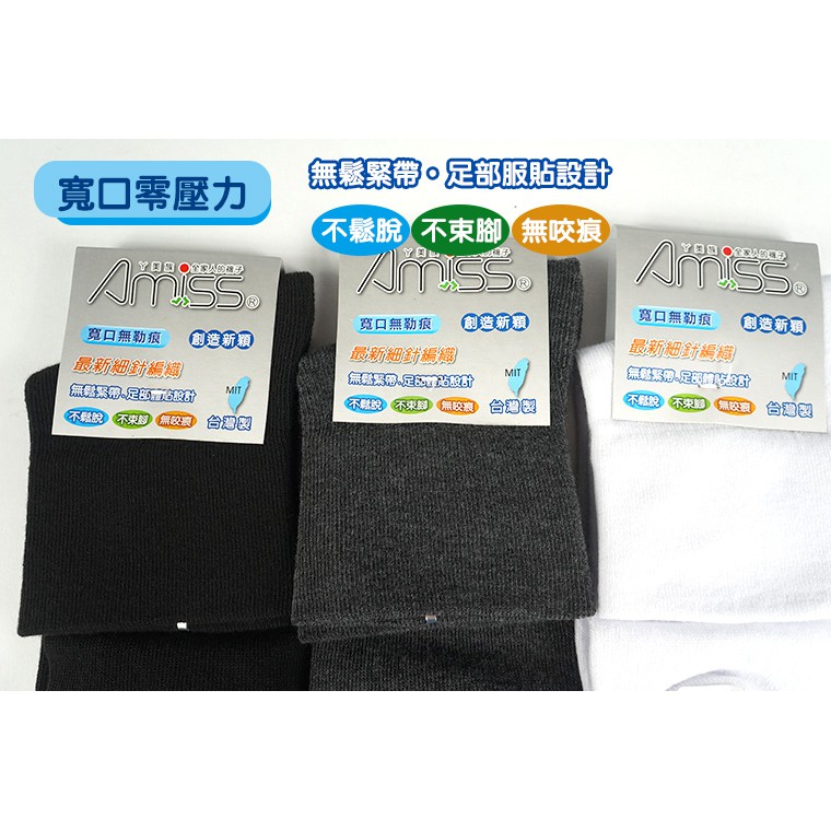AMISS【零壓力】寬口精緻無痕襪-B101-4黑色(1雙)|灰色(1雙)|白色(1雙)Amiss全家人的襪子