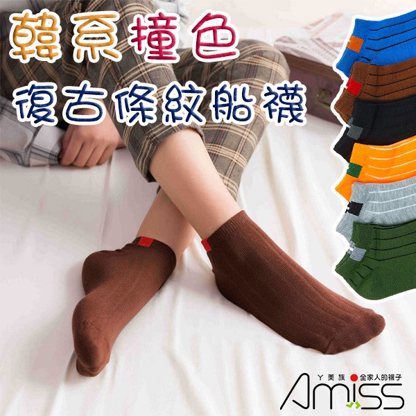 【Amiss】韓系流行撞色船襪-復古條紋C803-4顏色隨機-1雙SocksAmiss全家人的襪子