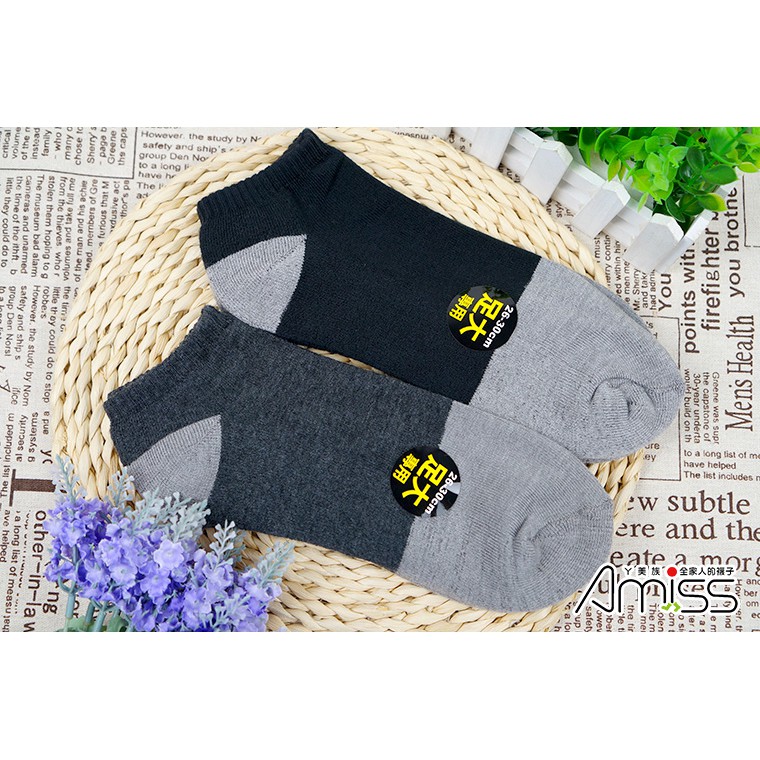 AMISS 加大厚底襪 26-30cm 男襪 特大襪 台灣製 足大專用 奈米竹炭純棉氣墊襪 運動短襪-A620-1XL黑色(厚底船襪)-1雙|灰色(厚底船襪)-1雙Amiss全家人的襪子