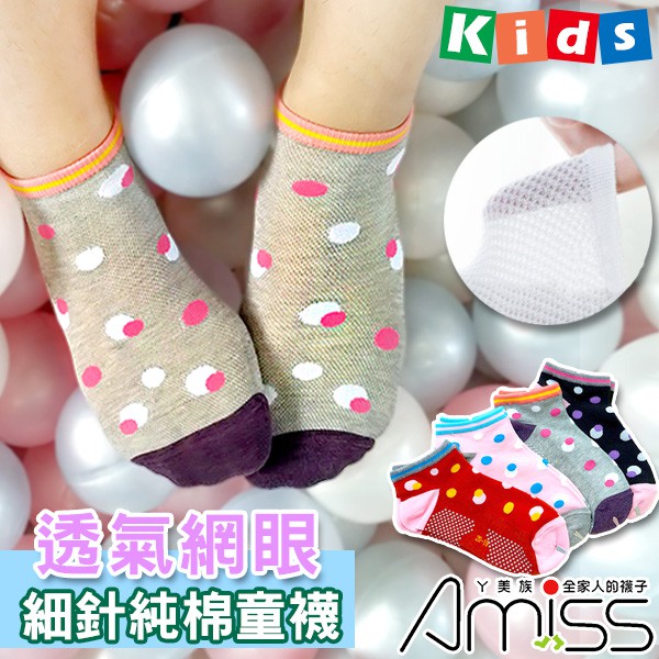 AMISS 透氣網眼止滑童襪-點點【2雙組】細針精梳棉輕薄止滑童襪 A210-203-6歲混款-2雙|7-12歲混款-2雙SocksAmiss全家人的襪子