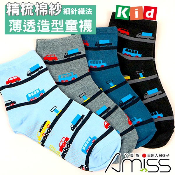 AMISS 細針止滑兒童長襪-交通車【2雙組】細針精梳棉 車車童襪 薄透童襪 A210-103-6歲混款-2雙|7-12歲混款-2雙SocksAmiss全家人的襪子