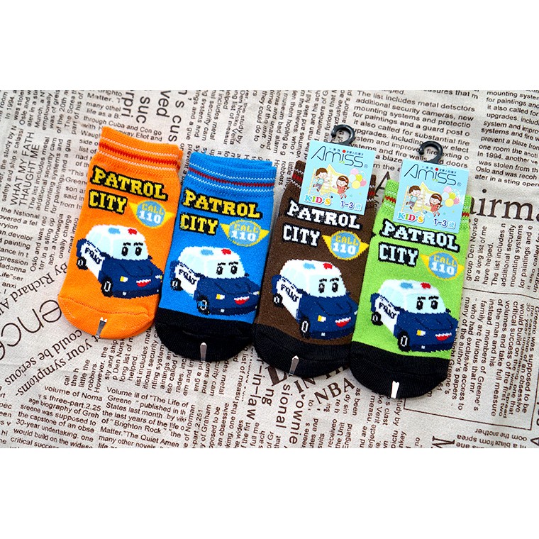 AMISS 直版止滑童襪【3雙入】正義警車 車車襪子 7-12歲/3-6歲/1-3歲 C405-537-12歲(3雙組)|3-6歲(3雙組)|1-3歲(3雙組)SocksAmiss全家人的襪子