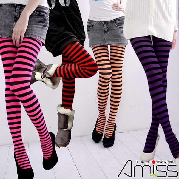 【Amiss】斑馬造型褲襪 線條褲襪 條紋褲襪 橫條褲襪 黑白絲襪 紅白褲襪 黑紅褲襪 萬聖節 聖誕節 A125-2黑/白|黑/紅|黑/深紫|黑/亮紫|聖誕紅|螢光桃|螢光橘|黑/綠|白/紅(大橫條)|九分桃|九分綠PantyhoseAmiss全家人的襪子