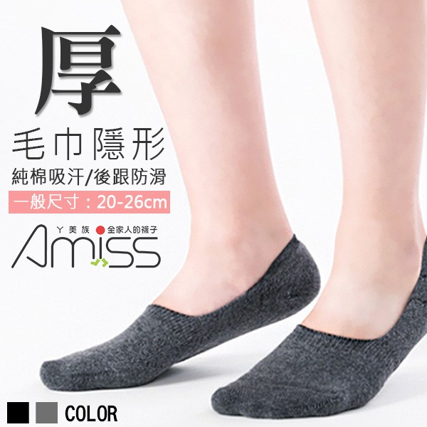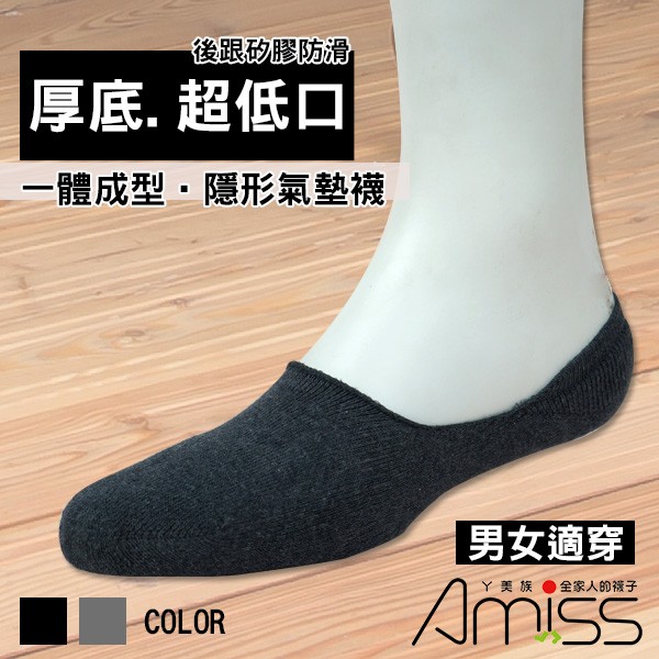 Amiss【厚底超低口襪】厚底隱形襪 超低氣墊襪【2雙入】-後跟防滑【M009】黑色(一般20-26)x2雙組|灰色(一般20-26)x2雙組|黑色(加大24-28)x2雙組|灰色(加大24-28)x2雙組SocksAmiss全家人的襪子