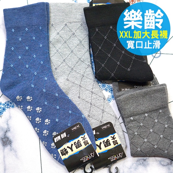 AMISS 無勒痕舒適加大 樂齡襪【2雙組】菱形花紋 長襪/大尺碼/寬口襪/純棉/防滑襪/長輩襪/保暖襪 C101-11混色-2雙組Amiss全家人的襪子