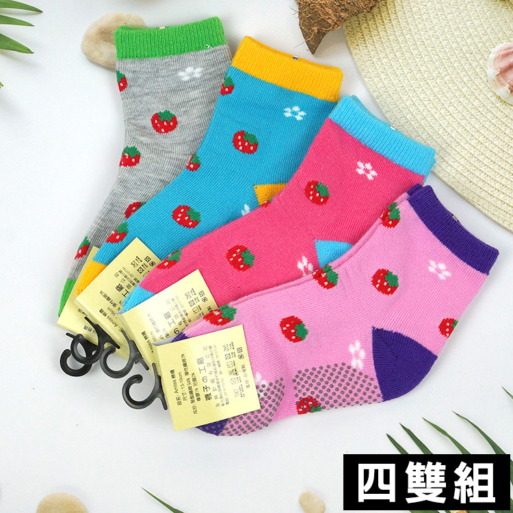 AMISS造型止滑童襪【4雙組】草莓小花 小花 兒童止滑襪 中筒襪 1-3歲/3-6歲/6-9歲/9-12歲6-9歲(4雙組)|9-12歲(4雙組)|1-3歲(4雙組)|3-6歲(4雙組)SocksAmiss全家人的襪子