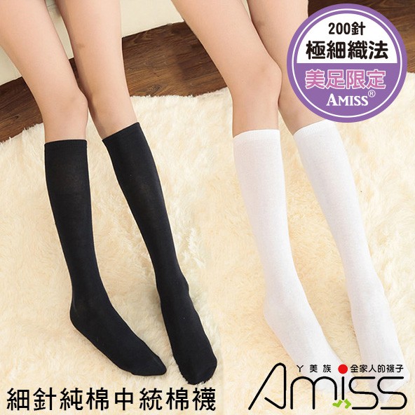 AMISS【極細針襪】素面純棉中統襪 學生襪 膝下襪 中筒襪 長襪 黑長襪 白長襪 (B021-21)黑色-1雙|白色-1雙SocksAmiss全家人的襪子