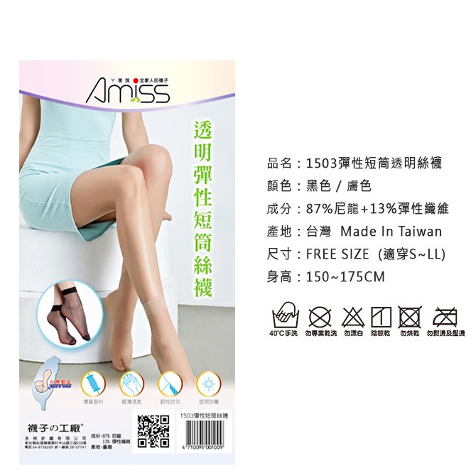 【Amiss】美肌裸膚彈性短筒透明絲襪【多雙組】短筒絲襪.短統襪 玻璃絲襪 (A503)黑色(1雙)|膚色(1雙)|膚色(6雙)|黑色(6雙)PantyhoseAmiss全家人的襪子