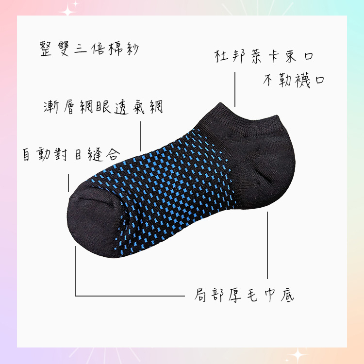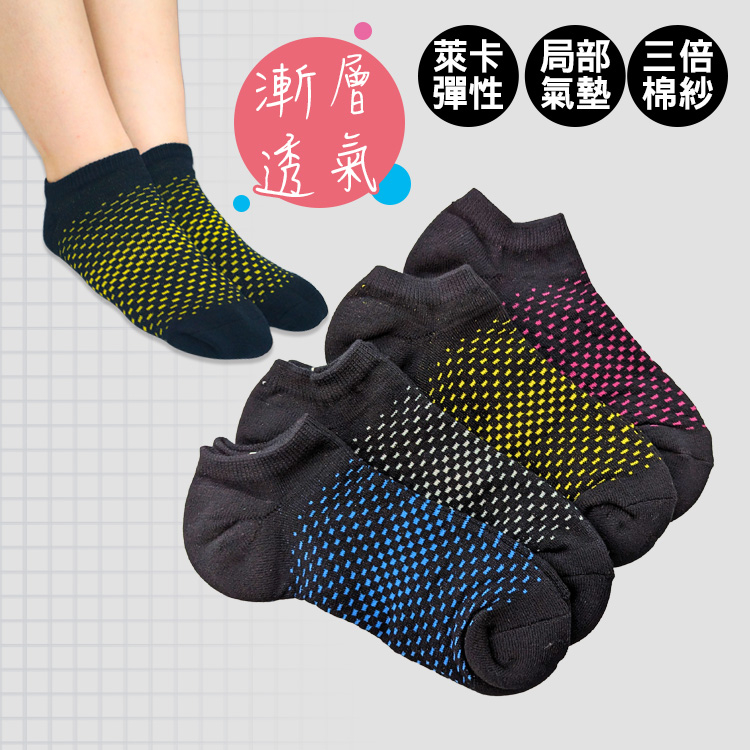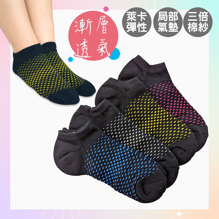 AMISS【漸層運動襪】 機能襪 三倍棉紗 網眼透氣襪 局部毛巾襪 氣墊襪 萊卡運動襪 短襪 船型襪 A602-13黑底/桃-1雙|不挑色-1雙|黑底/藍-1雙|黑底/灰-1雙|黑底/黃-1雙SocksAmiss全家人的襪子
