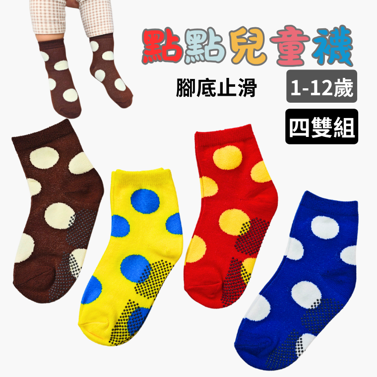 AMISS 兒童點點襪【4雙組】止滑童襪 繽紛大點點 兒童止滑襪 中筒襪 1-3歲/3-6歲/6-9歲/9-12歲1-3歲(4雙組)|3-6歲(4雙組)|6-9歲(4雙組)|9-12歲(4雙組)SocksAmiss全家人的襪子