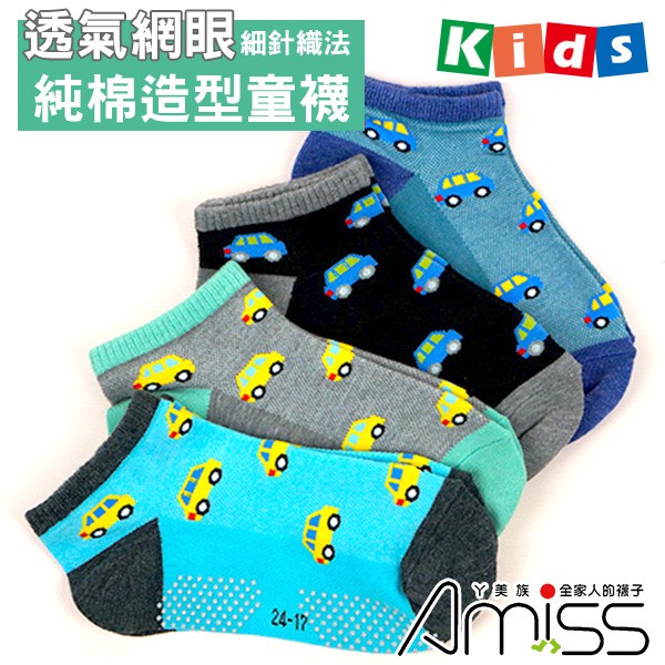 AMISS 透氣網眼止滑童襪-汽車【2雙組】 細針精梳棉 輕薄止滑 兒童短襪 薄透童襪 A210-243-6歲混款-2雙|7-12歲混款-2雙SocksAmiss全家人的襪子