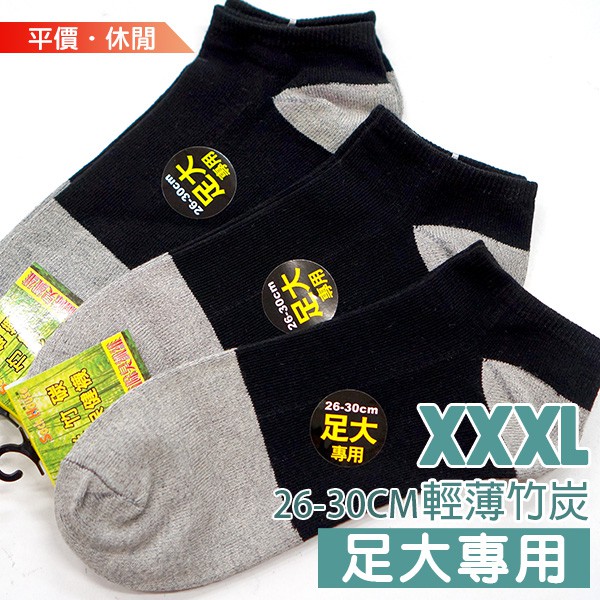 AMISS 薄加大船襪 26-30cm 竹炭船襪 足大短襪 大腳襪 加大男襪 大尺碼襪子 -C901-2黑色(船襪)-1雙|灰色(船襪)-1雙Amiss全家人的襪子