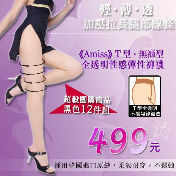 AMISS T型·無褲型全透明褲襪【12件組】韓國進口紗台灣製 彈性性感褲襪 耐勾絲襪 團購秒殺黑色(12件組)|亮光膚(12件組)|黑色(15件組)|亮光膚(15件組)PantyhoseAmiss全家人的襪子