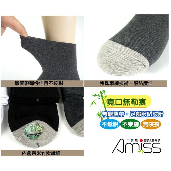 【Amiss】無勒痕-寬口竹炭精緻無痕襪(3色) B101-5黑色-單雙|白色-單雙|深灰-單雙SocksAmiss全家人的襪子