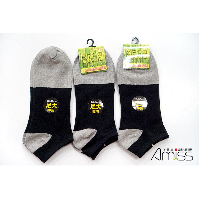 AMISS 薄加大船襪 26-30cm 竹炭船襪 足大短襪 大腳襪 加大男襪 大尺碼襪子 -C901-2
