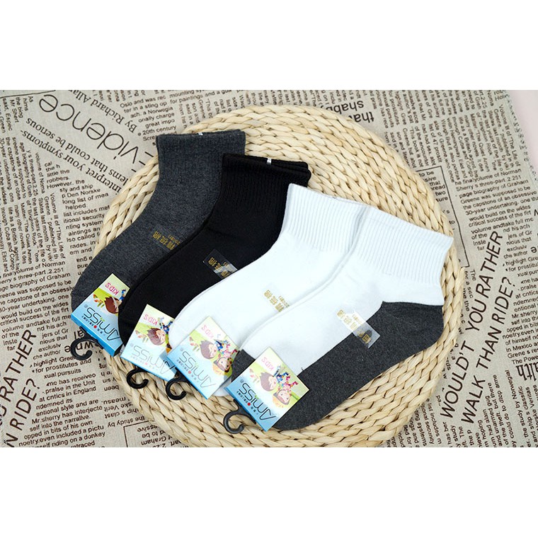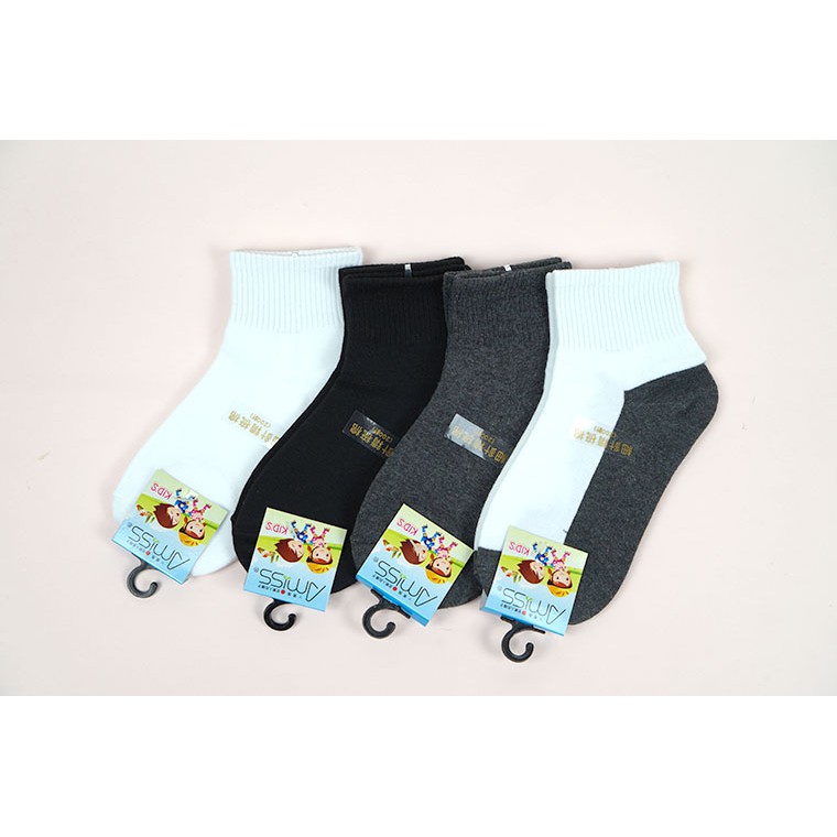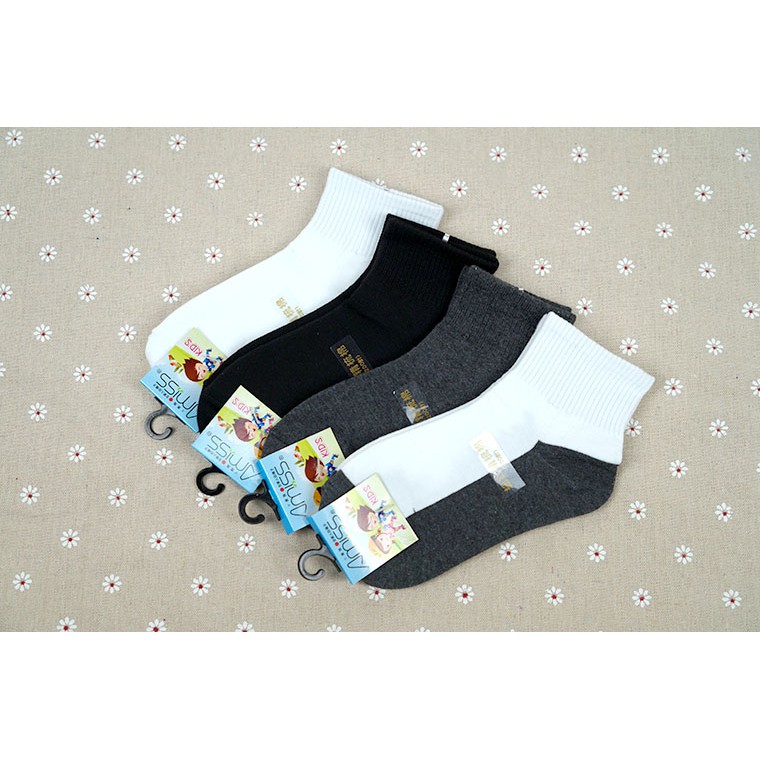 AMISS 薄款細針兒童襪-精梳棉素面童襪 1/2長襪 學生襪 細針童襪 兒童短襪 A210-2黑色-1雙|灰色-1雙|白色-1雙|陰陽(灰白)-1雙SocksAmiss全家人的襪子