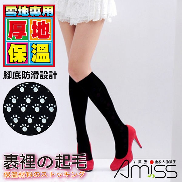 AMISS【絕對保暖中統襪】【2雙組】內裏刷毛止滑中統襪(黑色)-C305-8刷毛中統襪-2雙組SocksAmiss全家人的襪子