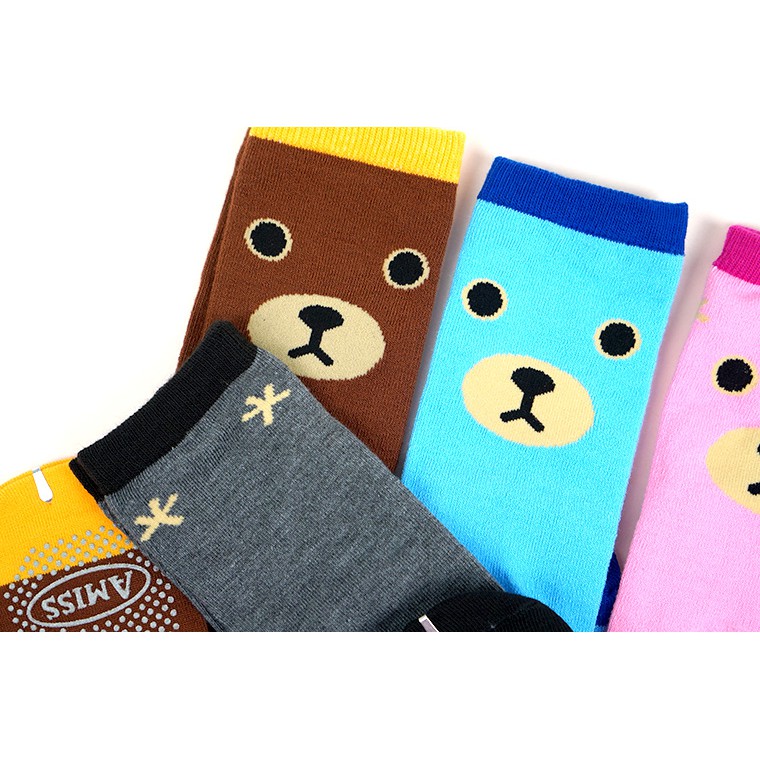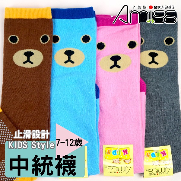Amiss造型純棉止滑中統童襪【3雙組】-憨直小熊(7-12歲) C408-15L混色-3雙入SocksAmiss全家人的襪子